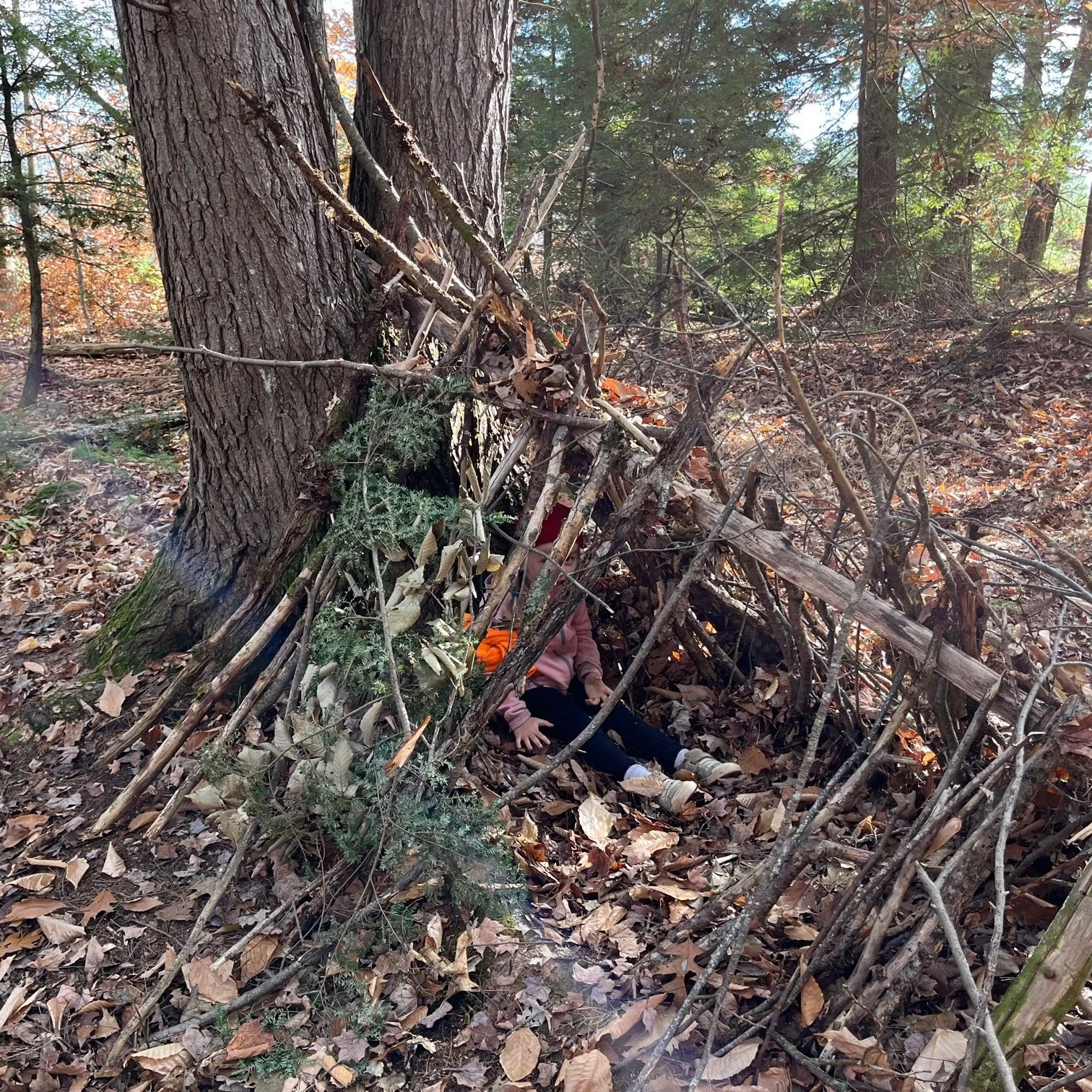 Building a fort to stay warm in the woods. | Juno Lamb