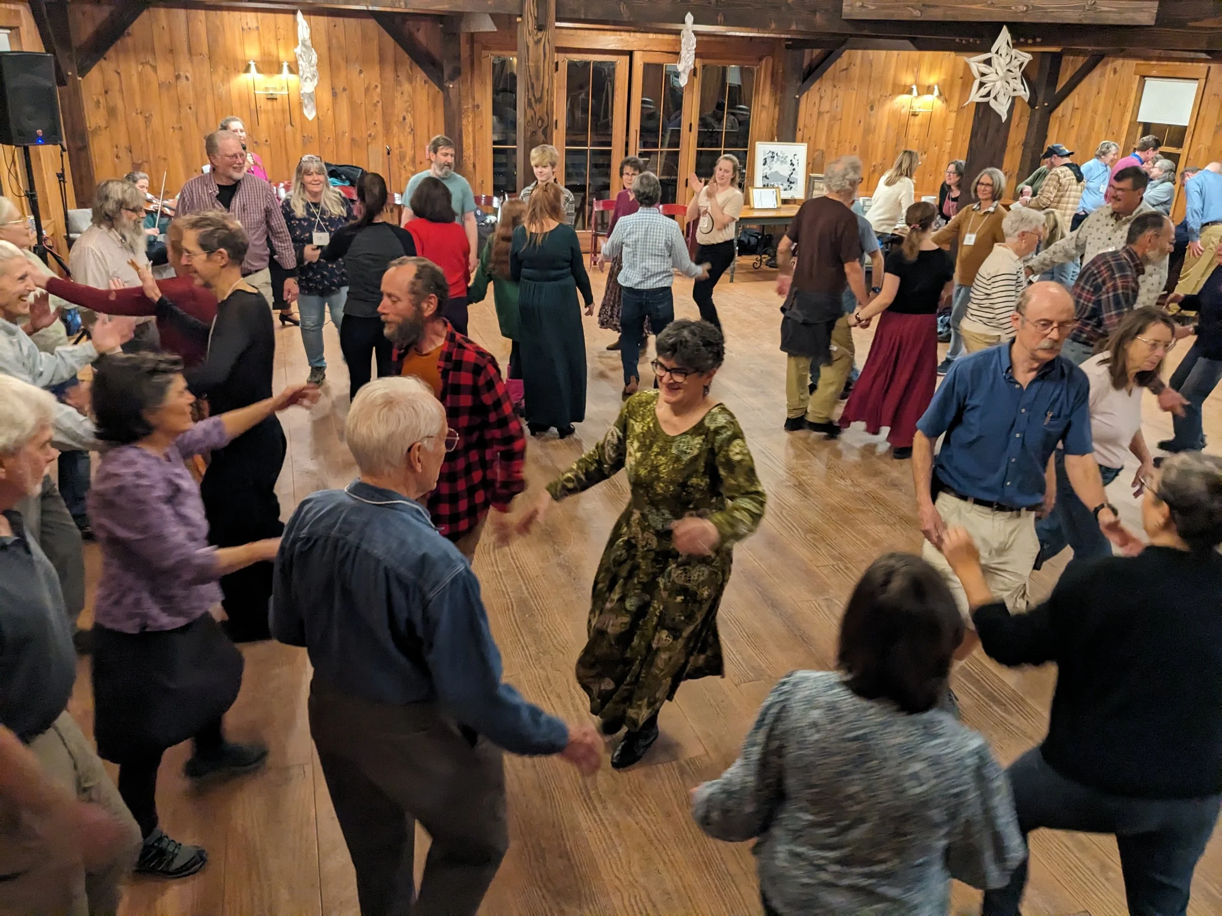 At 5 PM, we’ll head indoors for beer & wine by donation; cocktail hour music by the Winter Festivarians; a delicious supper provided by The Farmstand (vegetarian & dairy- and gluten-free options) and dessert; and at 7:30 PM a traditional dance with the Winter Festivarians and caller Jennifer McHone Villalobos. No experience necessary! The caller will guide you through jigs, reels, square dances, circle dances, waltzes, and more. This kind of dancing is a long tradition in Tamworth. Tamworth Outing Club has been hosting dances since 1937, the second oldest continuously held dance in New Hampshire.