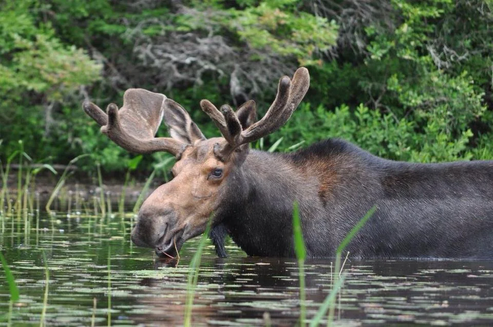 This past summer, a young moose was seen along Chocorua Lake Road, and one in the back of the Watkins’ opening. The above photo was taken by Paxton Sedler at the head of the lake near the Chocorua River inlet. One small bear was also seen early in the summer, but none later on.